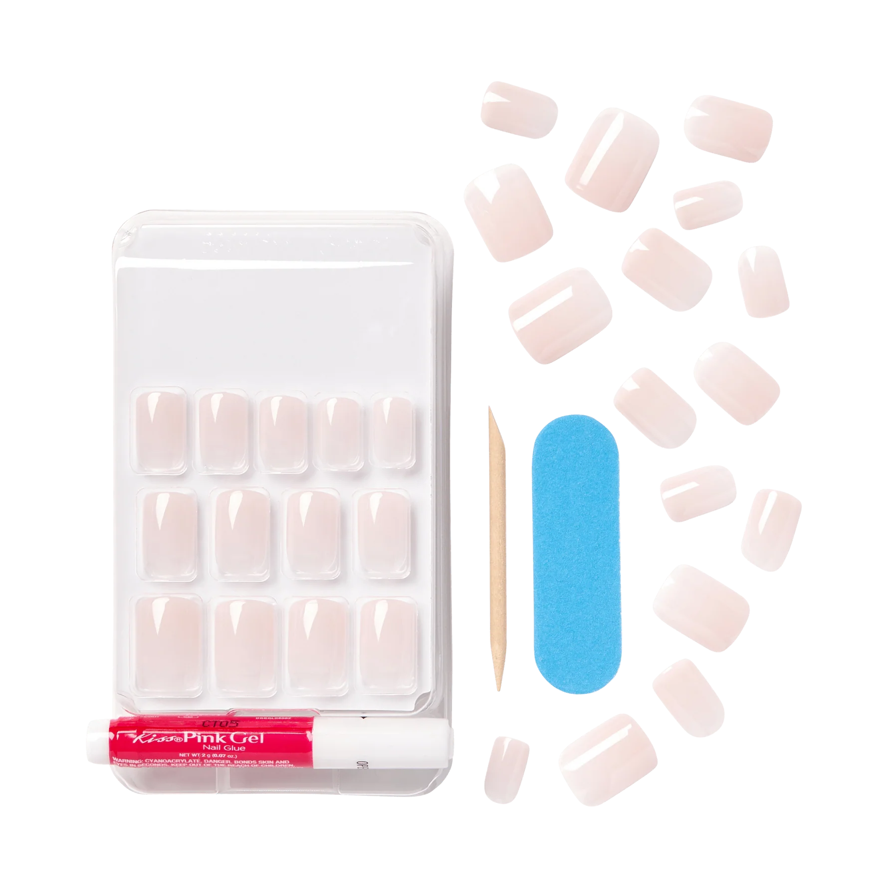 - Includes 28 fake nails, pink gel nail glue (2g), cuticle stick and mini nail file