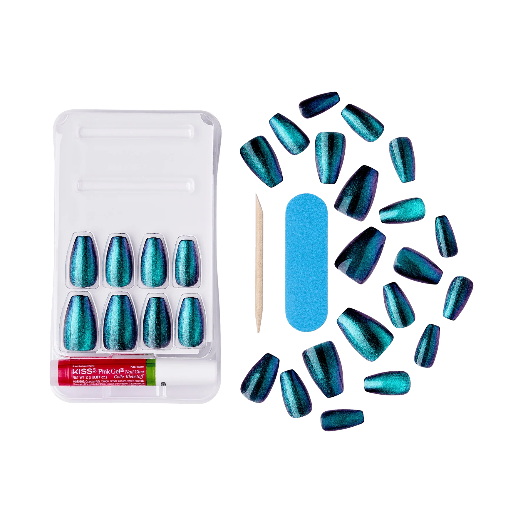 - Use KISS Glue OFF, or soak nails in acetone polish remover until soft.