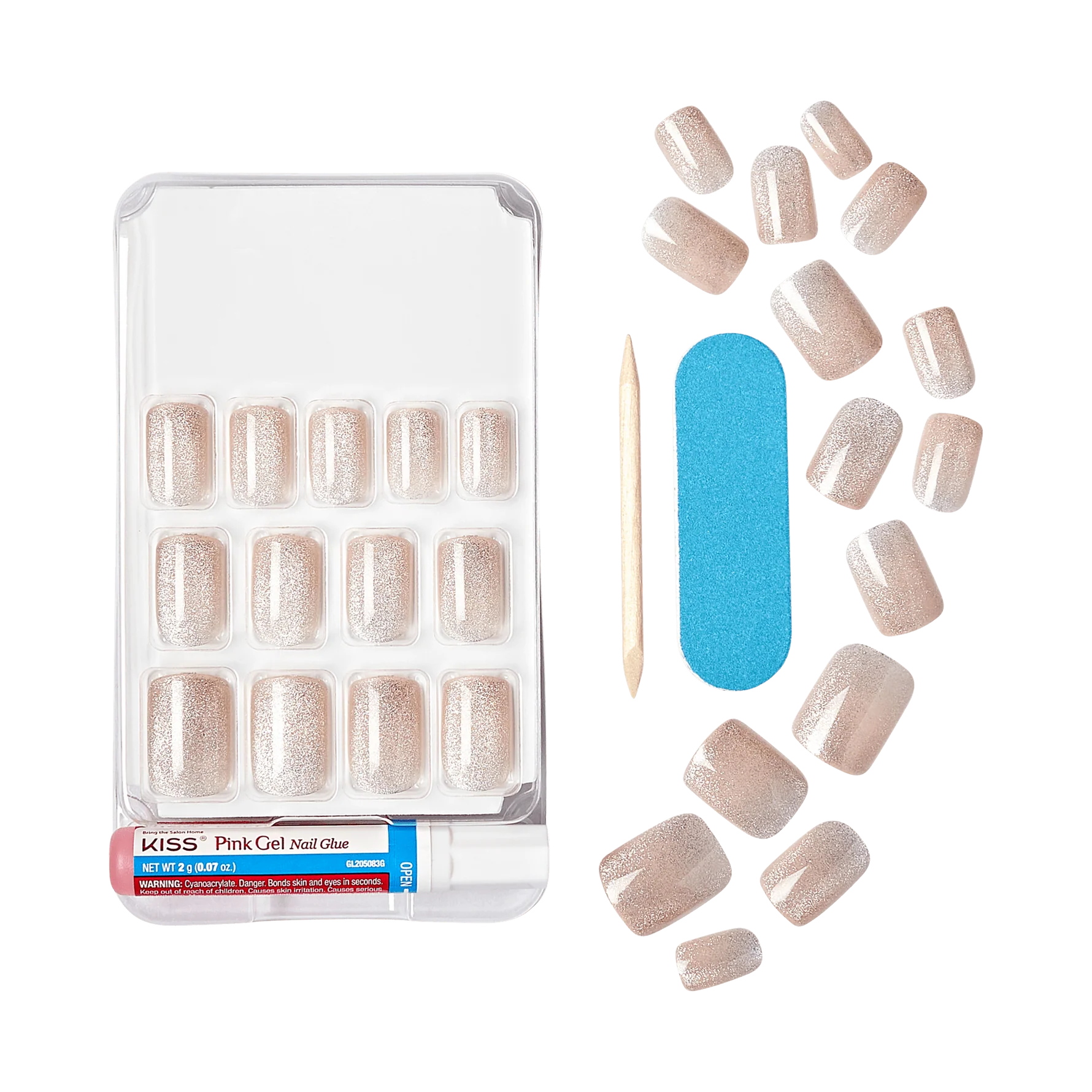 - Use KISS Glue OFF, or soak nails in acetone polish remover until soft.