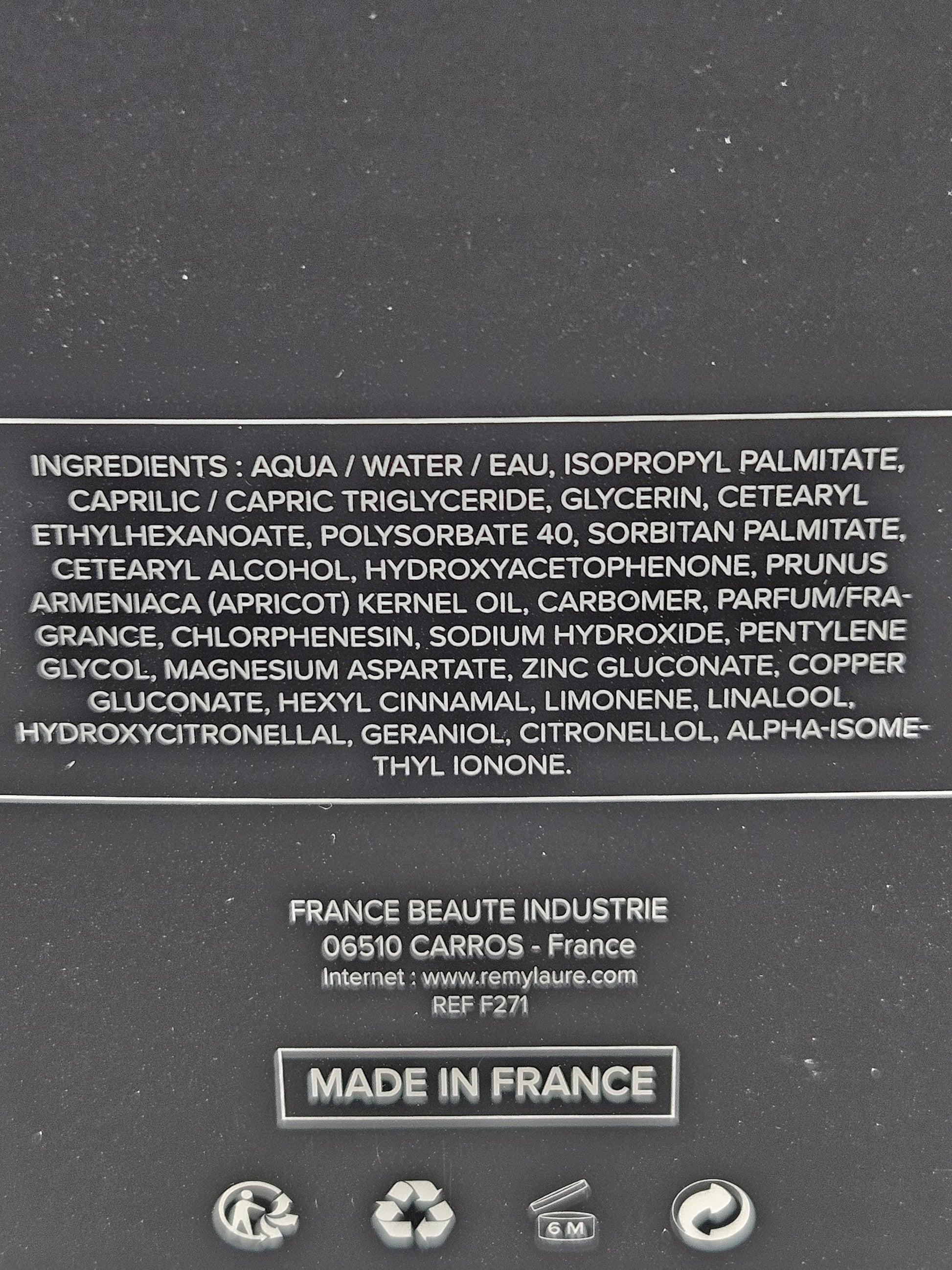 Main ingredients : Mineral Complex (Magnesium-Zinc-Copper). Apricot Kernel Oil. Cleansing Agent.