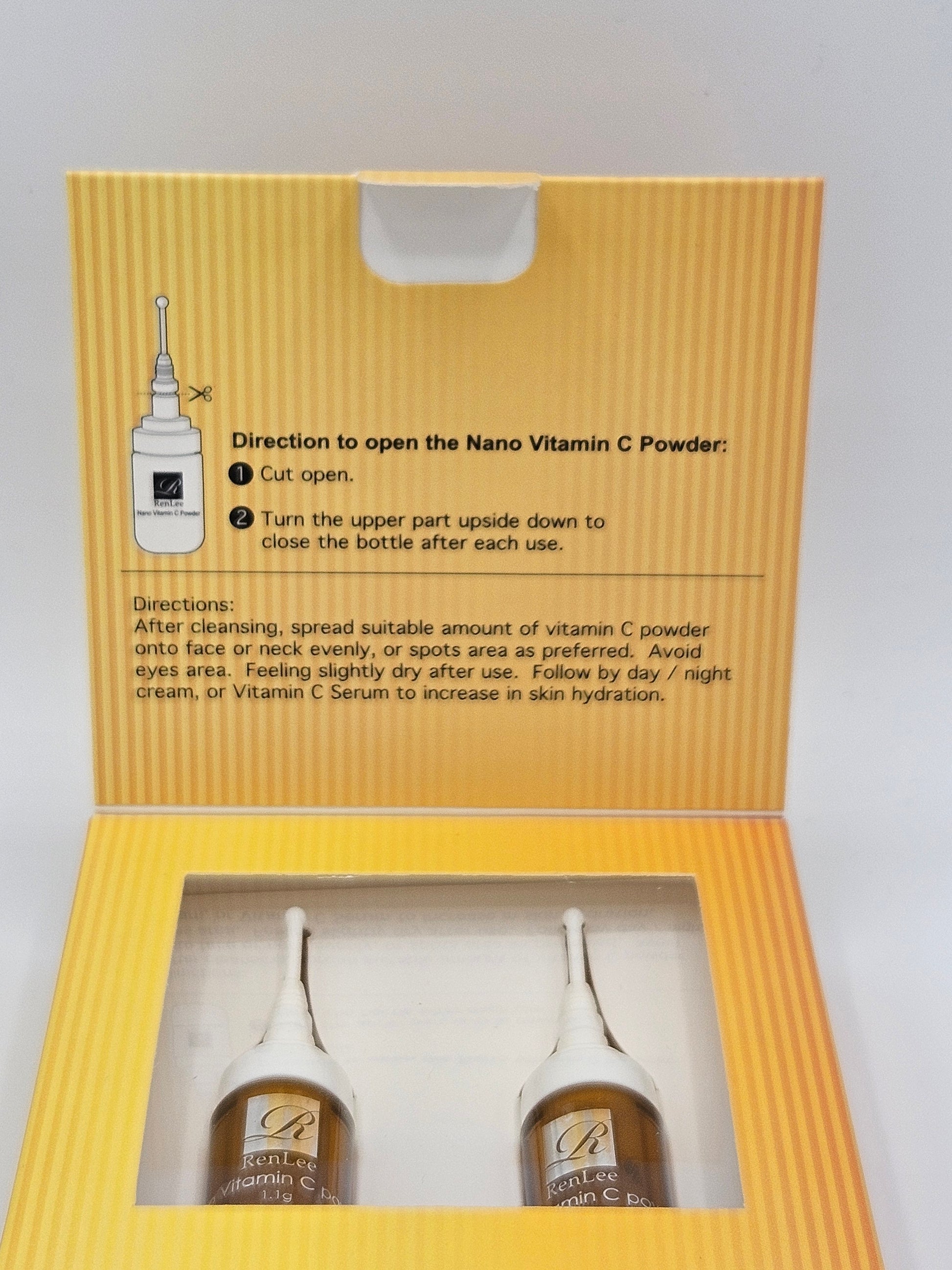 Made use of nanotechnology liposome vitamin C powder, at the moment the powder is massaged onto the skin, not only that it slowly activates on the surface of the skin, it absorbs by the underlying skin effectively. Efficient layers have been formed to combat the formation of melanin, suppress the activity of tyrosinase and eliminate of pigmentation. After continuous use, you will find changes in the skin; disappearance of spots and pigmentation, leaving only flawless and brighten skin.